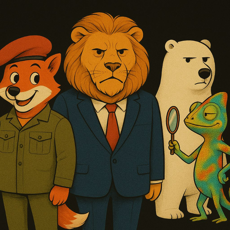 Y luego estaba el Camaleón Multicolor, que cambiaba de color según la encuesta del día. Un día verde, al siguiente morado, y si hacía falta, tricolor con glitter. Aprobaba trenes sin vías, subsidios sin fondos y leyes sin lógica. Era el héroe del momento… hasta el próximo momento.