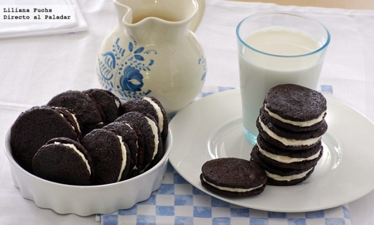 Las galletas Oreo caseras podemos disfrutarlas cuando más nos apetezca, especialmente a la hora de la merienda con un buen vaso de leche para mojarlas. Las galletas rellenas me gusta guardarlas en un recipiente hermético en la nevera, ya que así evitamos que la masa interior se reblandezca demasiado y se conservan mucho mejor.