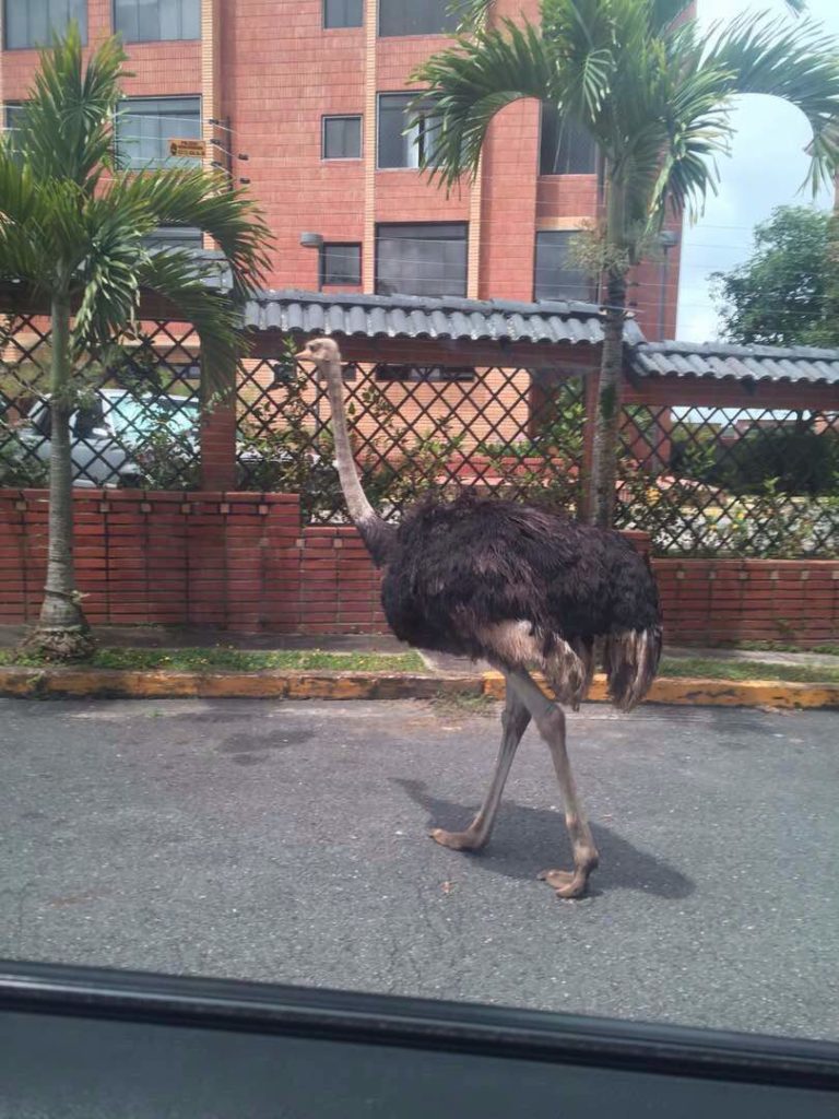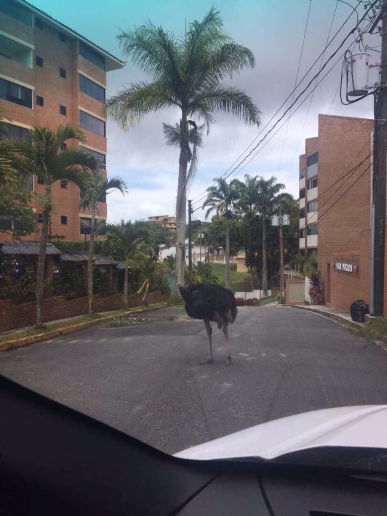 A La Patilla le llegaron varias fotografías de un avestruz caminando por La Unión, en el municipio El Hatillo de la ciudad de Caracas. Se presume que el ave se habría escapado del zoológico de contacto Expanzoo, el cual se encuentra en la zona.
