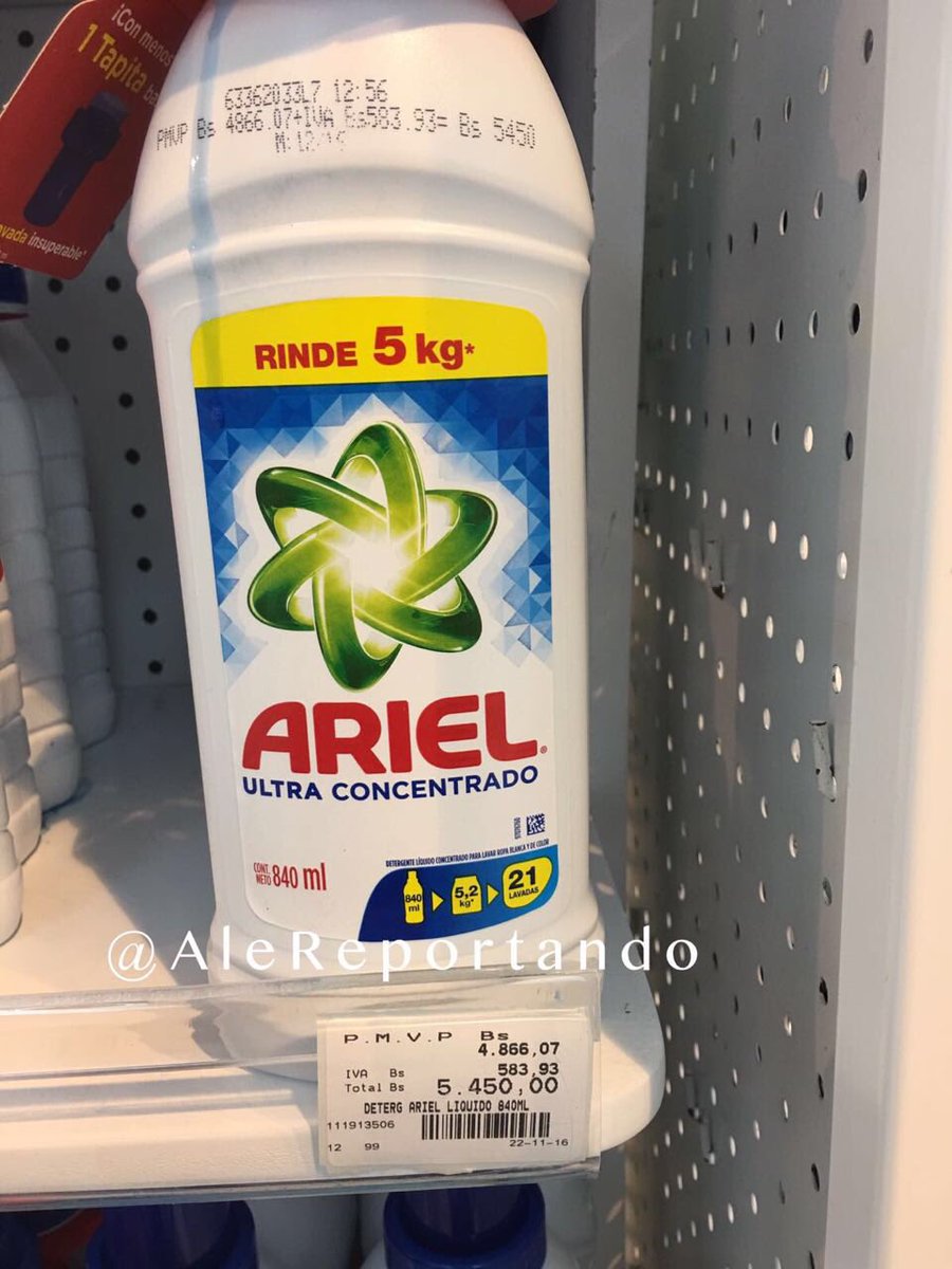 Por su parte, un jabón Ariel liquido de 840 ml cuesta B.5450.