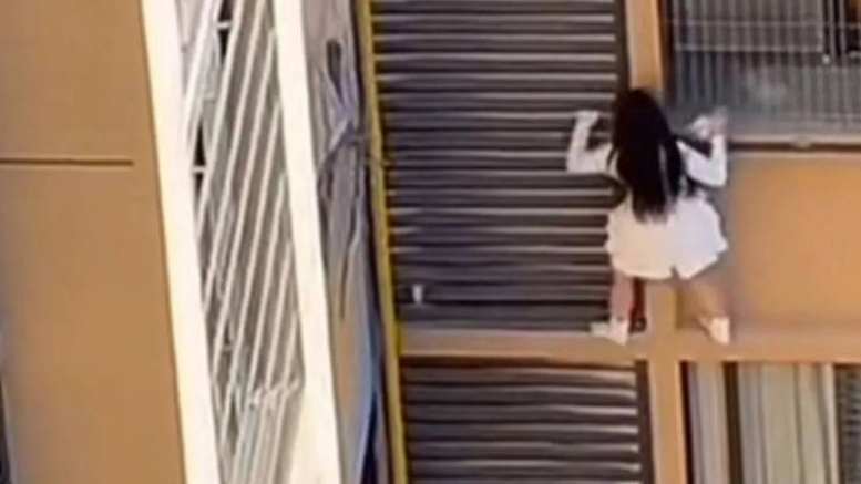 Los vecinos vieron a la mujer colgando de un balcón cuando parecía que casi perdía el equilibrio. La peculiar escena ocurrida en China acaparó la atención de todos los vecinos de los edificios cercanos, quienes observaban con horror cómo la chica intentaba llegar a un lugar más seguro.
