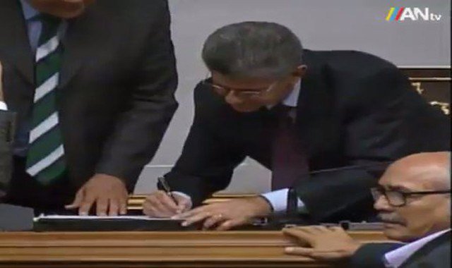 El presidente de la AN, Henry Ramos Allup fue el primero en estampar su firma.