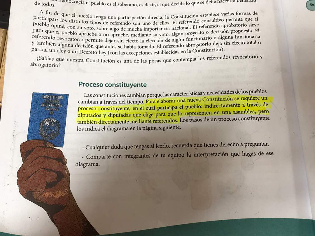 Hasta en libros de texto de MinEducación de 4to y 5to Grado lo dice: Para hacer Constituyente hay que consultar al pueblo. pic.twitter.com/5F7JIv1wTb