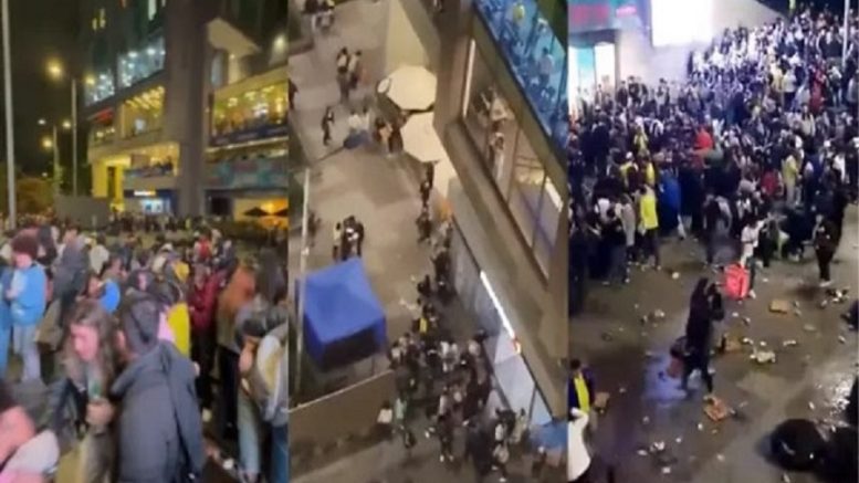 Así fue la batalla campal entre fanáticos de la Vinotinto y Colombia en plena plaza de Bogotá