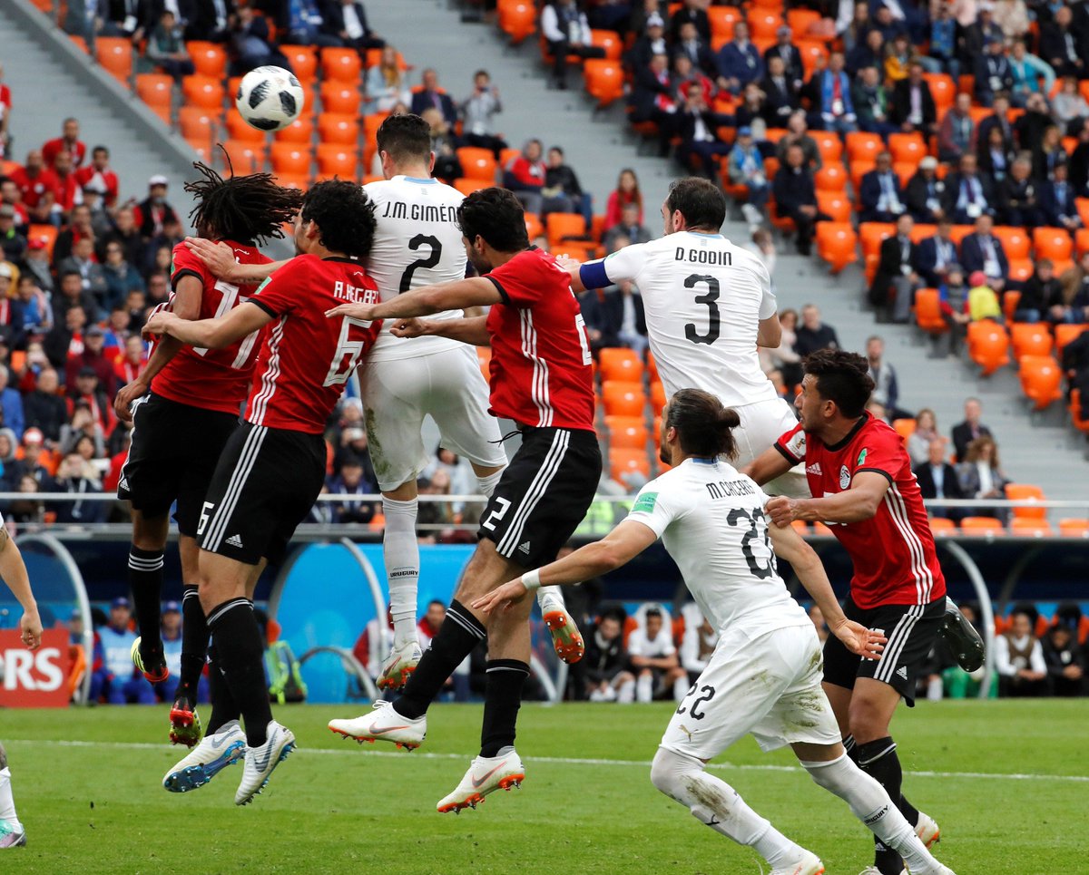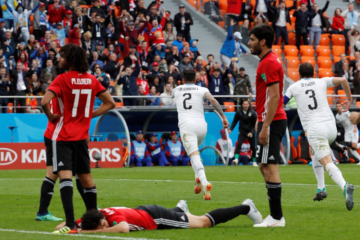 Un cabezazo en las postrimerías del encuentro del central del Atlético de Madrid José María Giménez  dio la victoria a Uruguay en su estreno en el Mundial. Hasta el minuto 89 resistió Egipto, que tuvo que afrontar el partido sin su estrella, Mohamed Salah, lesionado en el hombro.