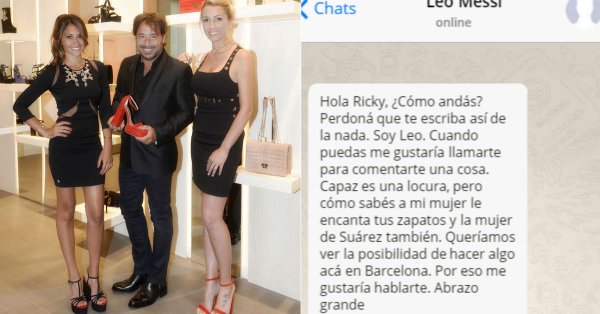 «Hola Ricky, ¿cómo andás? Perdoná que te escriba así de la nada. Soy Leo. Cuando puedas me gustaría llamarte para comentarte una cosa. Capaz es una locura, pero como sabés a mi mujer le encantan tus zapatos y a la mujer de Suárez, también. Queríamos ver la posibilidad de hacer algo acá en Barcelona. Por eso me gustaría hablarte. Abrazo grande».
