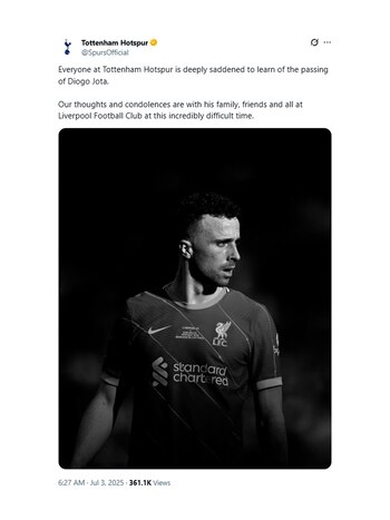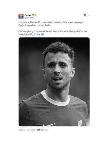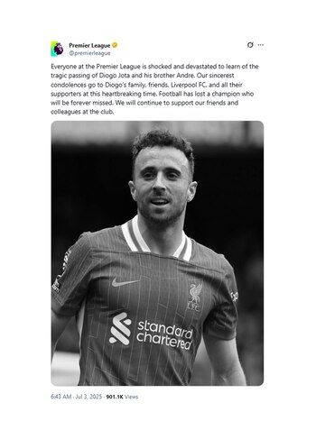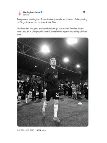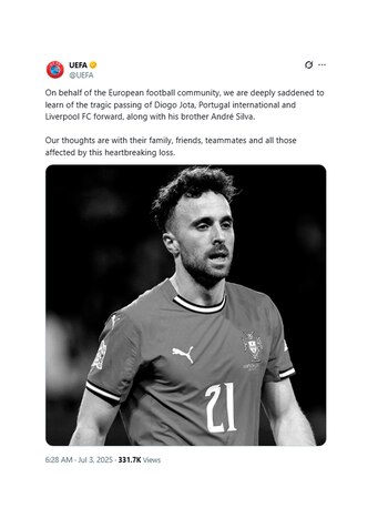 Los mensajes del mundo del fútbol tras la muerte de Diogo Jota:
