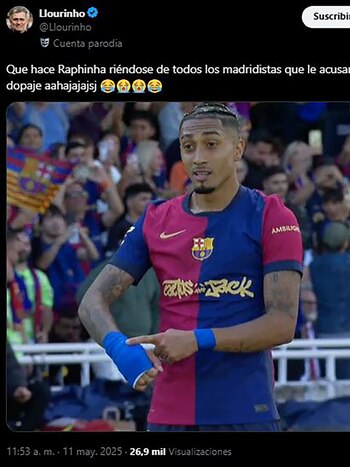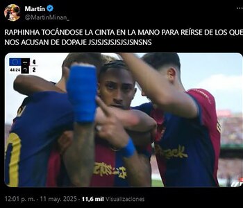 “Raphinha tocándose la cinta en la mano para reírse de los que nos acusan de dopaje”, bromeó un aficionado culé en las redes junto a una foto del festejo del brasileño. “Raphinha se tocaba la mano para todo los madridistas jajajaj”, recordó otro, mientras que un tercero, al ver el festejo del segundo gol, agregó: “Raphinha enseñando la venda de nuevo”.