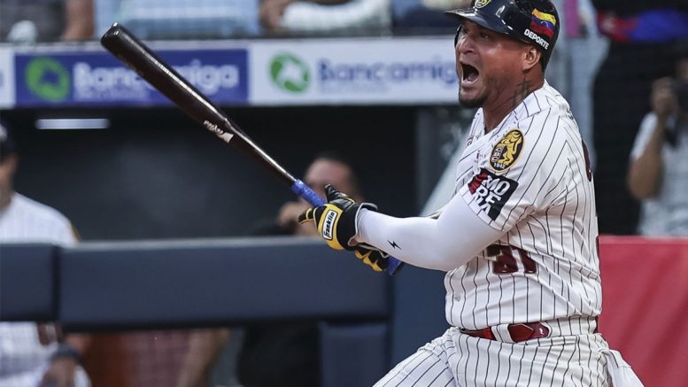 El estadounidense despachó su vuelacerca hacia el jardín izquierdo, con un corredor en circulación, frente a Luis Oviedo, en medio de un racimo de cinco rayitas en la tercera entrada que le dio ventaja momentánea a la visita de 6-1.