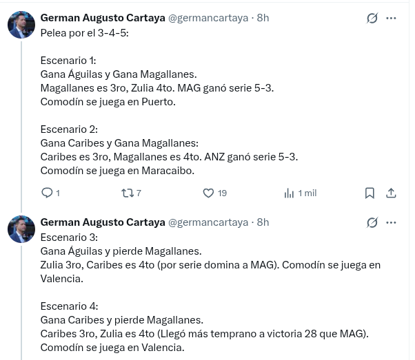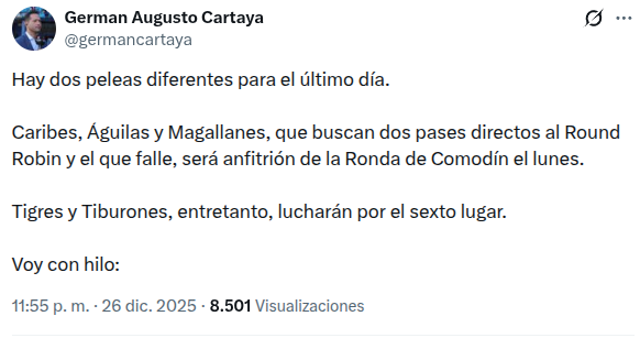 Magallanes, de igual forma, dejó su récord por encima de .500 por primera vez en la temporada y, a falta de una jornada para la finalización de la ronda eliminatoria -sin contar la posibilidad de juegos extras- causó un triple empate en el tercer lugar de la tabla de clasificación, con Caribes de Anzoátegui y Águilas del Zulia.