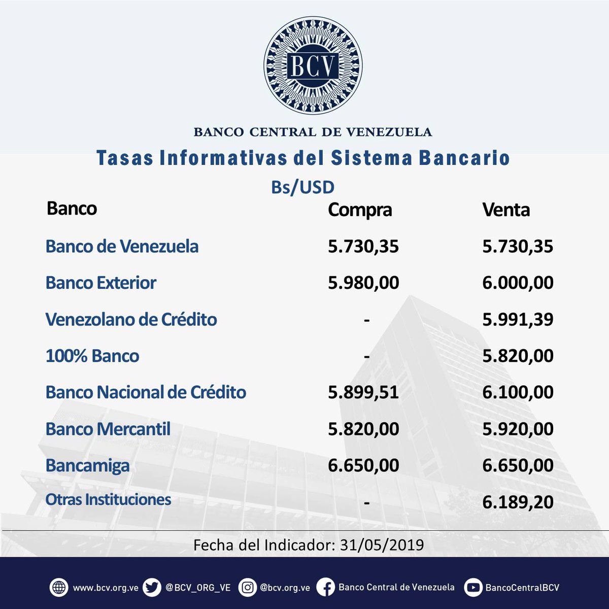 Actualmente el dólar en Venezuela se mantiene en Bs 5.887, ya que el día lunes 3 de junio no hubo actividad bancaria, mientras que el euro Bs 6.568 Igualmente se actualizaron los valores del rublo, el yuan y la lira turca.