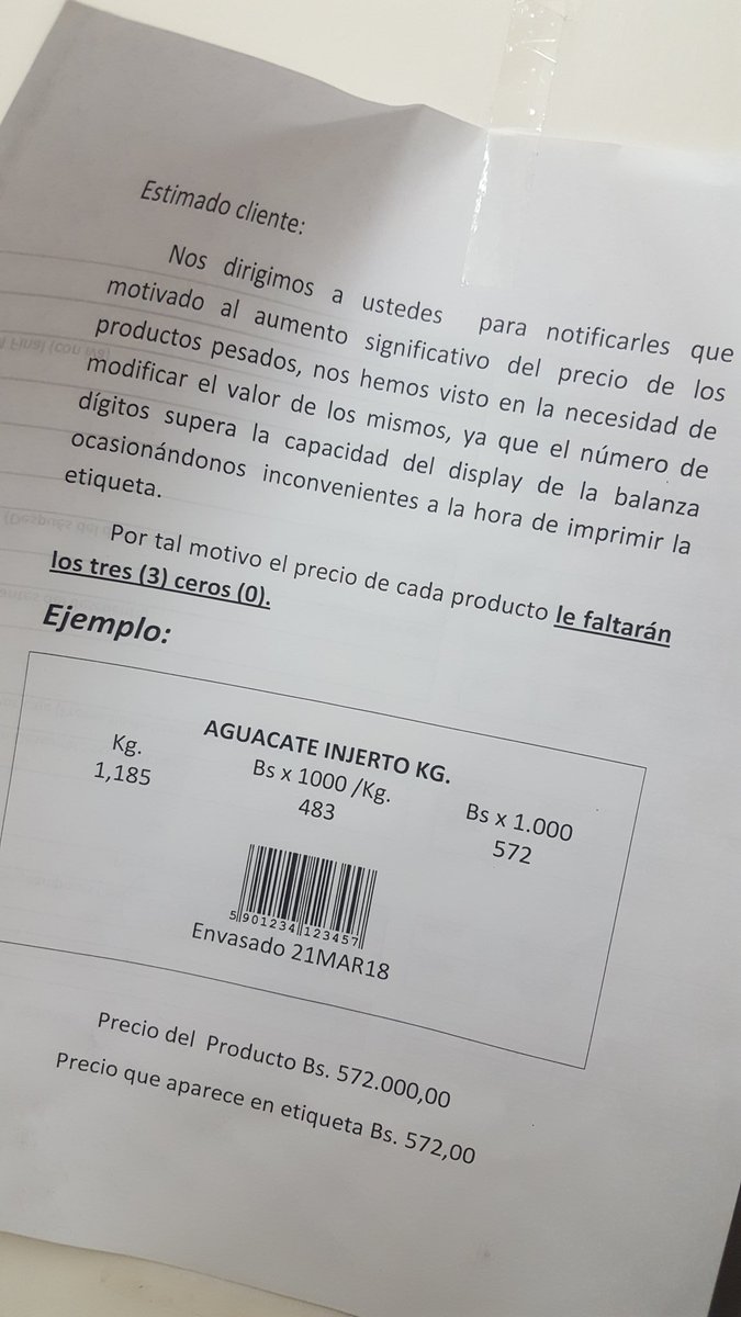 Algunos comercios, por necesidad, se han adelantado en la eliminación de 3 ceros a los montos en Bs. pic.twitter.com/3thsVTmvRm