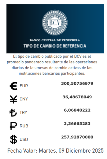 Mientras la cotización del dólar oficial subió 1,20% este viernes 5 de diciembre para ubicarse en 257,93 bolívares por unidad, precio que será el tipo de cambio vigente durante el próximo martes 9 de diciembre, ya que el lunes 8 será feriado bancario.