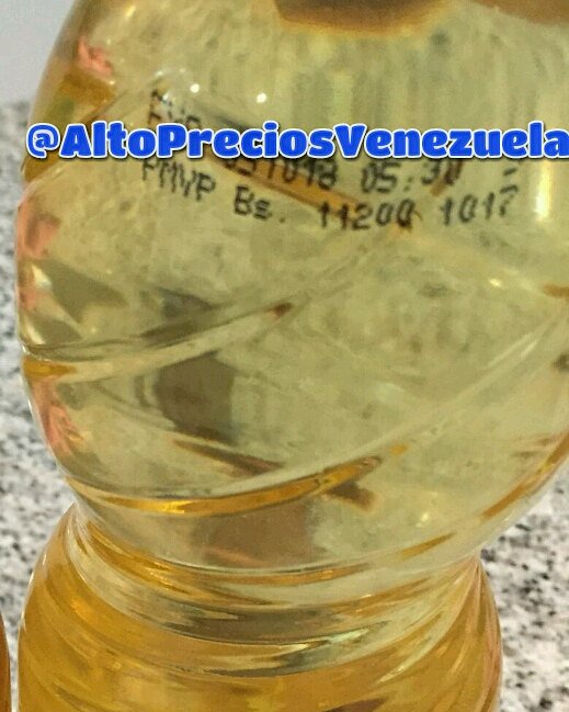 Según información difundida en la red social Twitter, el costo de un litro de aceite de la popular marca Vatel es comercializado actualmente en 11 mil 200 bolívares.