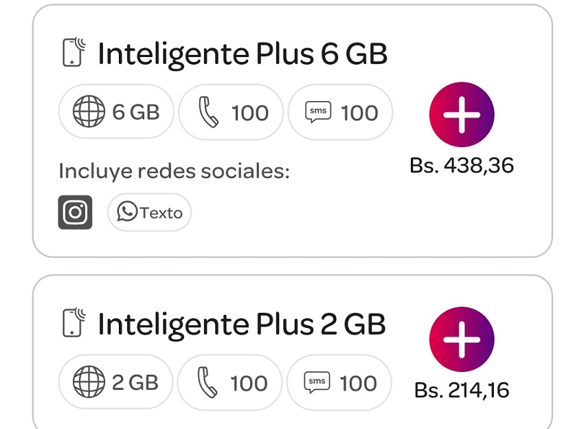 – Plan Inteligente Plus 6 GB: Bs. 438,36.