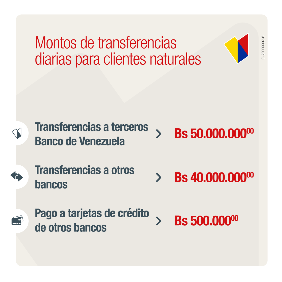 El Banco de Venezuela recordó a sus usuarios los límites establecidos para efectuar operaciones electrónicas, como transferencias y pago de tarjetas de créditos tanto para clientes propios como de otras entidades financieras.