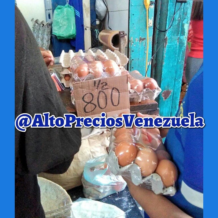 1/2 Carton de Huevos…800 BsS. (80 Millones BsF) / (1.37$) Y El Salario Minimo Mensual al 12/12/18 es de 4500 BsS (7.72$) …(Via @altopreciosvenezuela )… #altopreciosvenezuela #altosprecios #altopreciosvenezuela pic.twitter.com/OlGV2Ql1ad