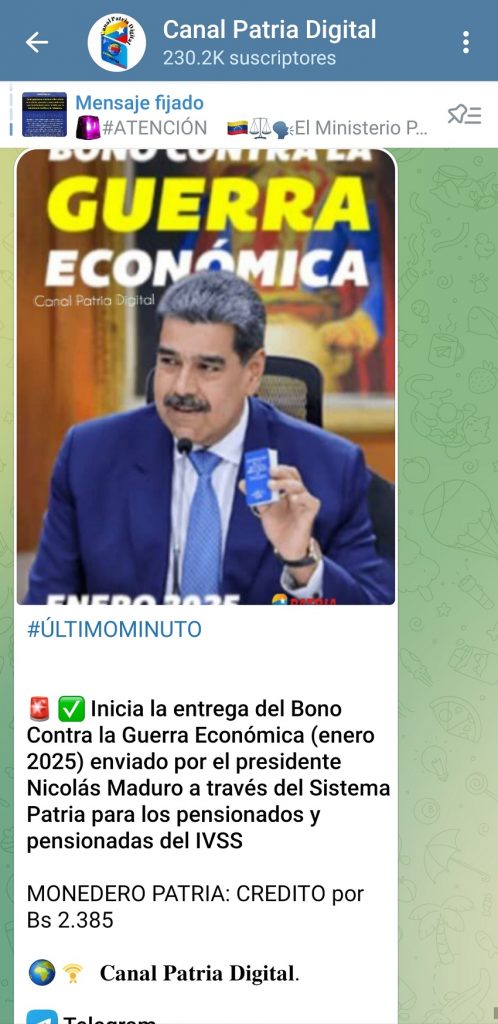 Este martes 21 de enero de 2025, comenzó el pago del bono «Contra la Guerra Económica», correspondiente al mes en curso, a través del Carnet de la Patria.