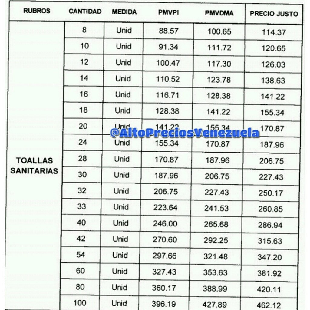 Publican lista de precios de pañales y toallas sanitarias Por: Redacción Noticias al Dia y a la Hora 18 agosto, 2016 Todos los días los «precios justos» mellan el bolsillo de los venezolanos.