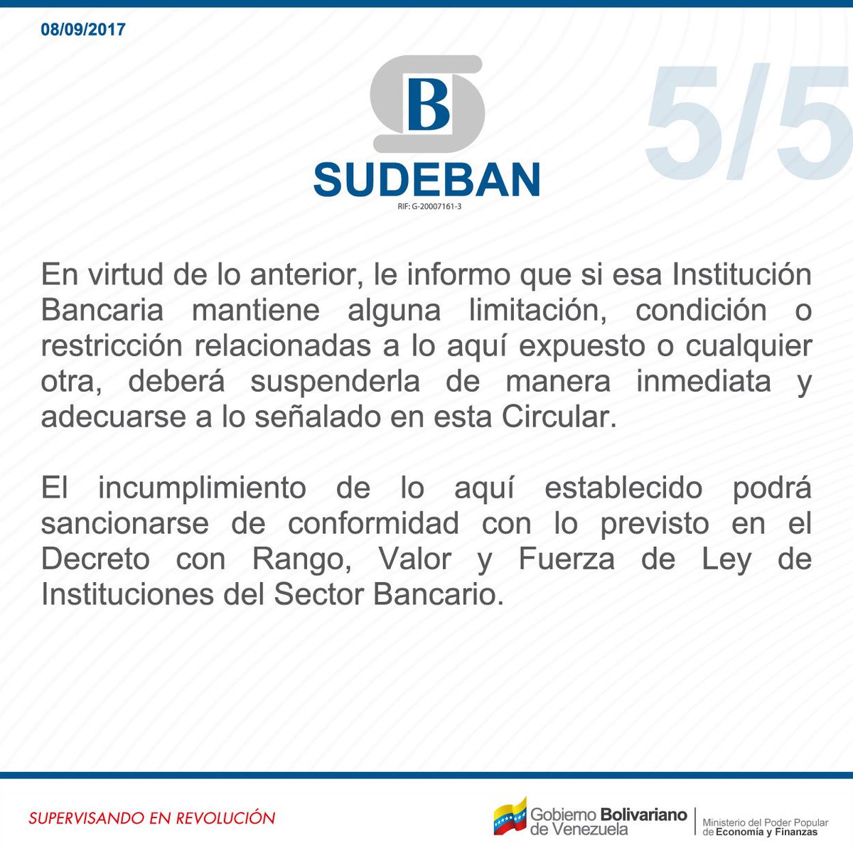 En este sentido, Sudeban estableció las siguientes disposiciones a los entes financieros