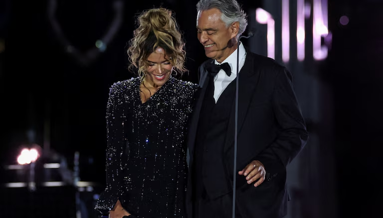 Luego se unió a Bocelli para entonar el clásico ‘Vivo por ella’, que generó ovaciones y gestos de afecto entre asistentes provenientes principalmente de América Latina. Para muchos, el evento fue presentado como una fecha histórica.