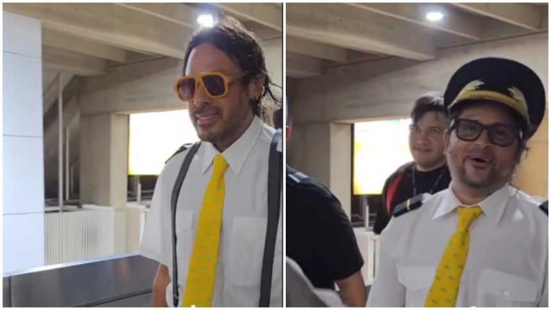 Los icónicos cantantes venezolanos Servando y Florentino se disfrazaron de pilotos para pasar desapercibidos a su llegada al Aeropuerto Internacional Simón Bolívar de Maiquetía.