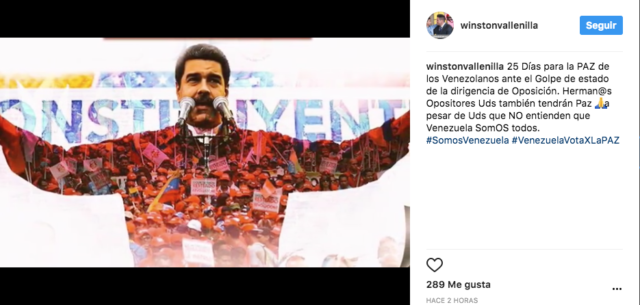 Vallenilla resaltó en su publicación, junto a un video con la voz del presidente de la República: “Herman@s Opositores Uds también tendrán Paza pesar de que Uds que NO entienden que Venezuela Somos todos” .