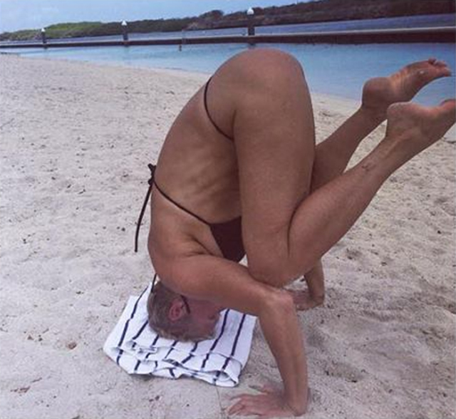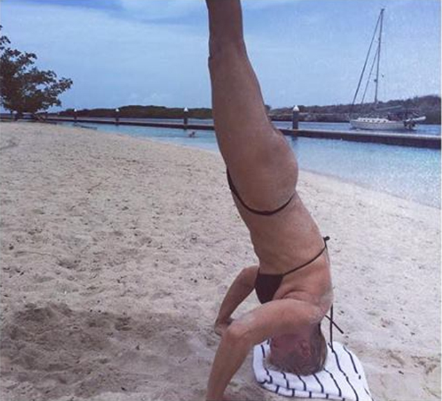 Xuxa, la actriz, cantante y modelo brasileña, publicó una serie de fotografías en sus redes sociales en las que se le ve practicando yoga en bikini y sin ningún retoque digital.