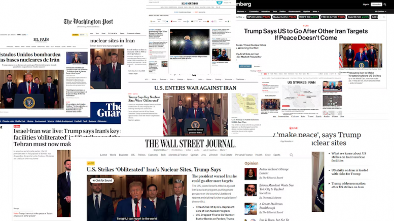 El diario El País encabezó su cobertura con “Estados Unidos bombardea las bases nucleares de Irán”, mientras que The New York Times tituló: “US enters war against Iran” (EEUU entra en guerra contra Irán).