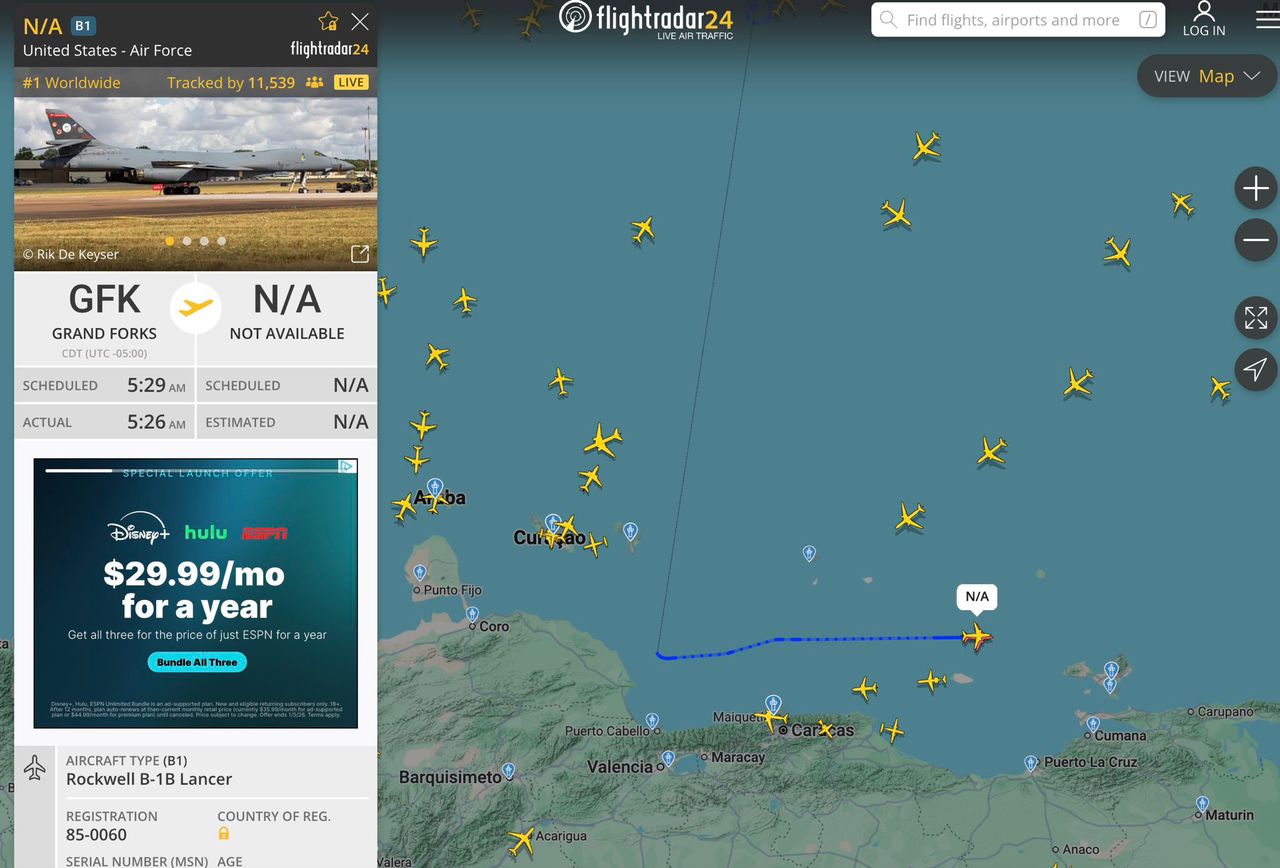 Los aviones —identificados como HOGAN11 y HOGAN13— partieron desde la base aérea Grand Forks, en Dakota del Norte, con rumbo hacia el Caribe e ingresaron a la Región de Información de Vuelo (FIR) Maiquetía, sobrevolando frente al litoral venezolano desde el estado Falcón hasta Nueva Esparta.