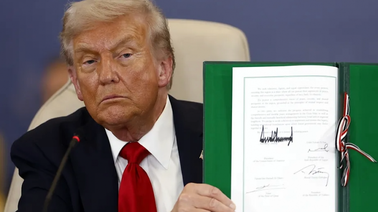 El presidente de Estados Unidos, Donald Trump, encabezó en Sharm el-Sheikh una cumbre internacional en la que, junto a los líderes de Catar, Egipto y Turquía, firmó el denominado “plan de paz para Gaza”, con el objetivo de consolidar el alto el fuego entre Israel y Hamás.