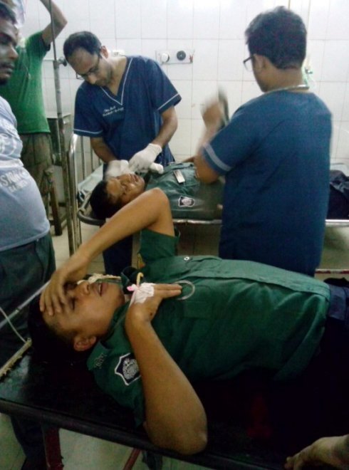 Un portavoz de la Policía en Dacca, Maksudul Alom, confirmó a Efe que al menos cinco personas resultaron heridas, en el enfrentamiento con fuerzas de seguridad durante el que “se escucharon al menos dos explosiones”.