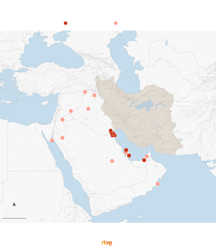 Hasta ahora, se han registrado misiles iraníes enviados contra bases estadounidenses en Kuwait, Emiratos Árabes Unidos, Catar, y Baréin.