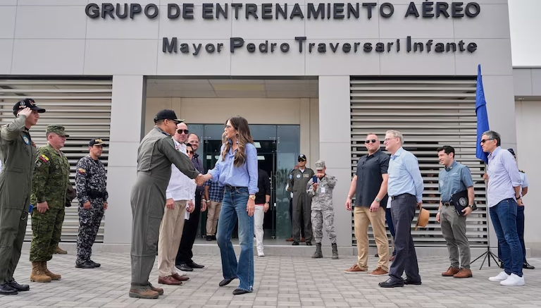 La secretaria de Seguridad Nacional recorrió junto a autoridades nacionales las posibles localizaciones para las infraestructuras. “¿Por qué si no vendría Noem por segunda vez de forma rápida?”, cuestionó Reimberg, recordando que la funcionaria también estuvo en Ecuador en julio y que, en su reciente desplazamiento, el foco fue reconocer in situ Manta y Salinas con el gobierno y las fuerzas de seguridad ecuatorianas.