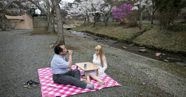 «Mi corazón late a mil por hora cuando vuelvo a casa con Saori», asegura Senji Nakajima, de 62 de años, mientras se va de pícnic con su compañera de silicona.
