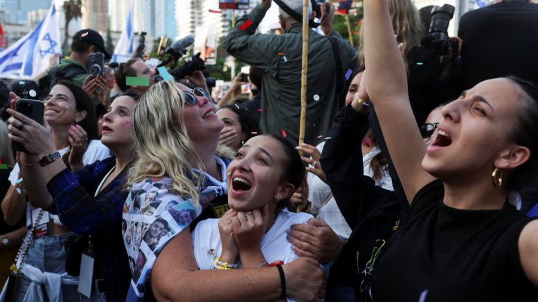 La Plaza de los Rehenes en el centro de la ciudad dejó de ser el lugar sombrío que fue durante más de dos años. Bien temprano a la mañana y llena de gente, estalló de alegría. Es que el grupo terrorista Hamas liberó a los 20 rehenes israelíes: David Cunio, Ariel Cunio, Eitan Horn, Bar Avraham Kuperstein, Evyatar David, Yosef Haim Ohana, Segev Calfon, Avinatan Or, Elkana Buhbut, Maksim Harkin, Nimrod Cohen, Matan Tzangauker, Matan Angrest, Eitan Mor, Gali Berman, Ziv Berman, Omri Miran, Alon Ohel, Guy Gilboa-Dalal y Rom Breslavski.