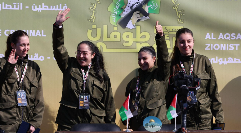 Las cuatro soldados liberadas han aparecido en la plaza de Palestina de la Ciudad de Gaza sonrientes y en buen estado de salud. En el momento que las han subido al escenario, han saludado a los cientos de personas y decenas de milicianos palestinos de las brigadas de Al Qassam y de Al Quds allí congregados.