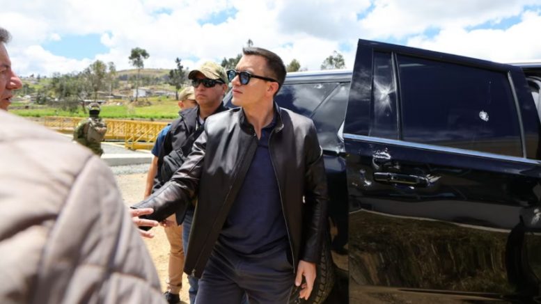 El vehículo oficial del presidente de Ecuador, Daniel Noboa, fue atacado en la tarde de este martes en el cantón Tambo, mientras que voceros gubernamentales insiste en que hubo una «tentativa de asesinato» contra el mandatario