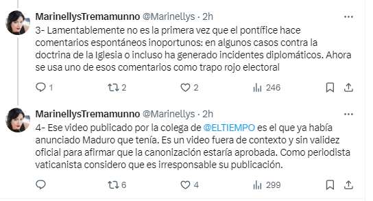 «Ahora se usa uno de esos comentarios como trapo rojo electoral (…) ese video publicado es el que ya había anunciado Maduro que tenía. Es un video fuera de contexto y sin validez oficial para afirmar que la canonización estaría aprobada», dijo en sus redes.