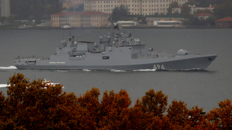 Según informó el diario The Telegraph, la fragata Admiral Grigorovich, perteneciente a la Flota del Mar Negro de la Armada Rusa, escoltó a través del estrecho de la Mancha a dos petroleros identificados como «Universal» y «Enigma».