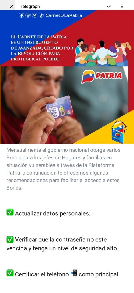Igualmente, el Canal Patria Digital destacó que los usuarios pueden interactuar con la mensajería de Patria (3532) dos veces al mes, «preferiblemente cuando hay bonos activos».