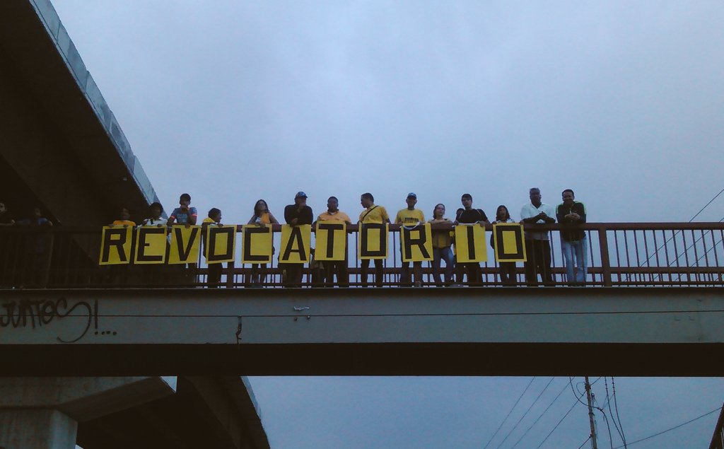 Activistas de la tolda amarilla de Primero Justicia amanecieron en los elevados de Guatire y Guarenas pidiendo la salida de Maduro con el revocatorio.
