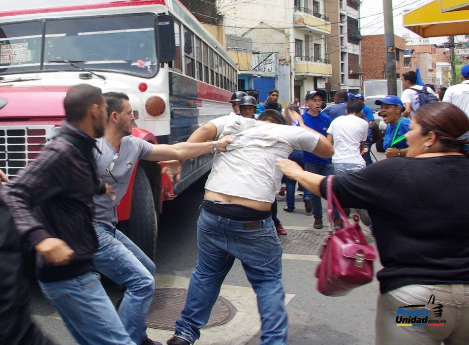 Este miércoles en los Teques, estado Miranda, la movilización convocada por la dirigencia de la Mesa de la Unidad Democrática (MUD), fue atacada por un grupo violento de oficialistas, quienes al finalizar la actividad, se fueron en contra de los allí presentes.