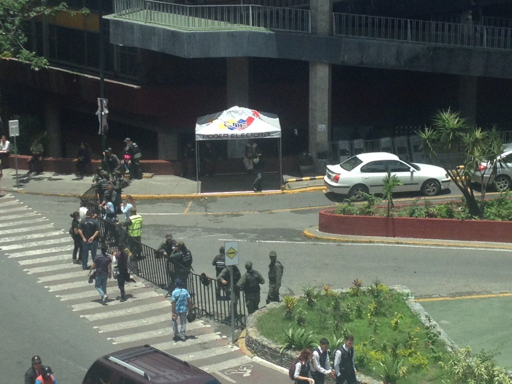 Tras conocerse que la presidenta del Consejo Nacional Electoral (CNE) ofrecerá este lunes declaraciones, por los alrededores de ente electoral se observó un cerco militar para resguardar el lugar.