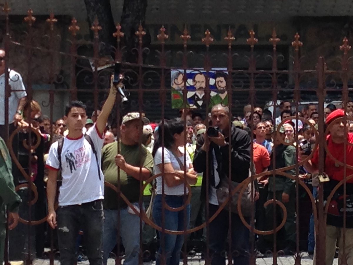 El director de Comunicaciones Estratégicas y Relaciones Institucionales de la AN, Oliver Blanco, denunció a través de Twitter que el grupo intenta «saltar cercas del Palacio Federal Legislativo».