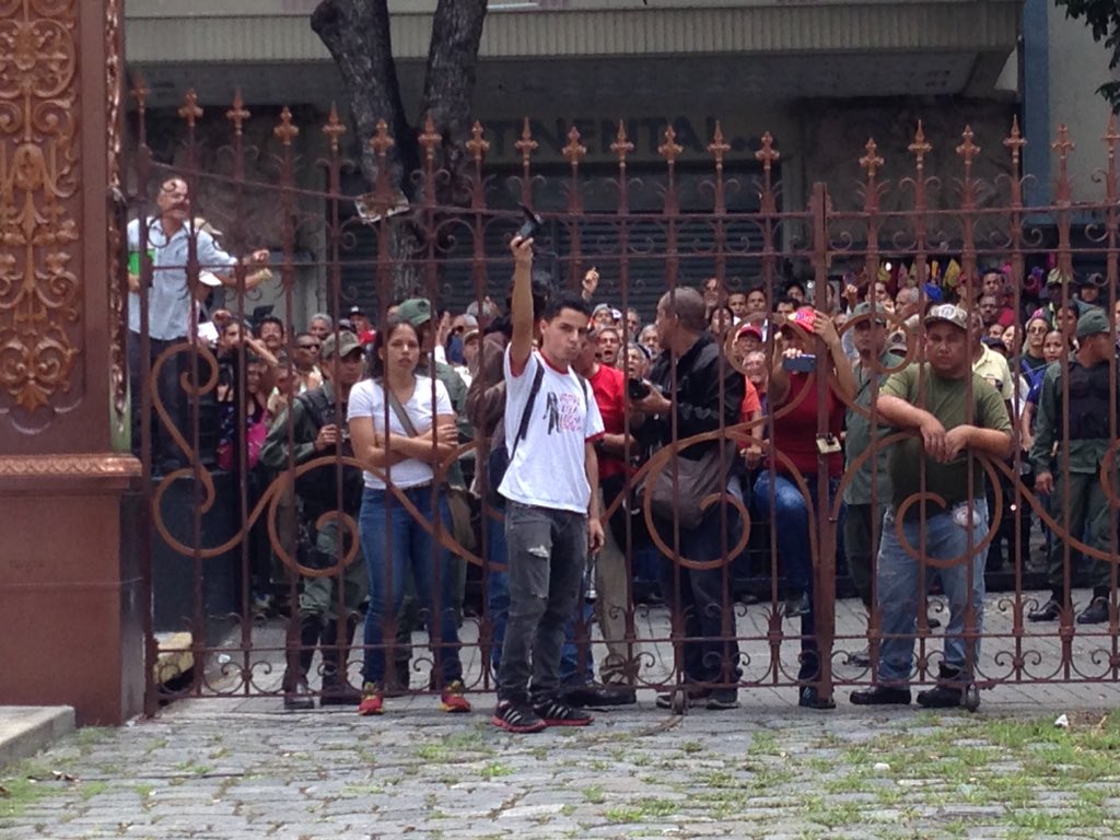 Según periodistas en el lugar, el grupo llegó luego de que los diputados de la bancada minoritaria (chavismo) se fueran de la sesión de la AN.