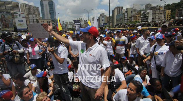 Durante una transmisión por periscope, mientras participaba en la movilización, Capriles repudió que efectivos de la Guardia nacional impidiera el avance de la protesta a la sede del Ministerio de Interior, Justicia y Paz.