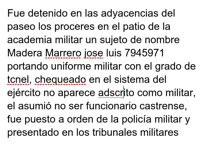 El sujeto de nombre José Luis Marrero fue interrogado por los efectivos presentes y al comprobar que no estaba adscrito a ninguna de los componentes de la Fanb, fue puesto a la orden de la policía militar y presentado en los tribunales militares.