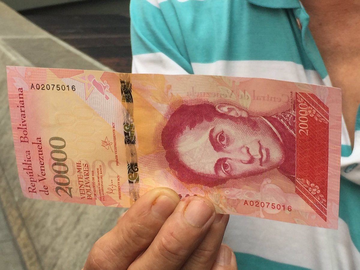 La periodista Osmary Hernández compartió a través de su cuenta en la red social Twitter imágenes de ciudadanos con billetes del nuevo cono monetario, concretamente de 20 mil bolívares.