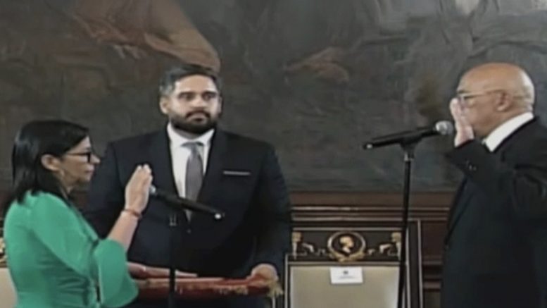 La funcionaria prestó su juramento ante el presidente de la Asamblea Nacional, Jorge Rodríguez, ante quien dijo sentir dolor por el secuestro de Maduro y su esposa, Cilia Flores.
